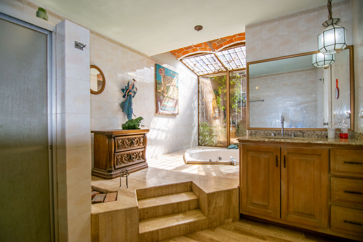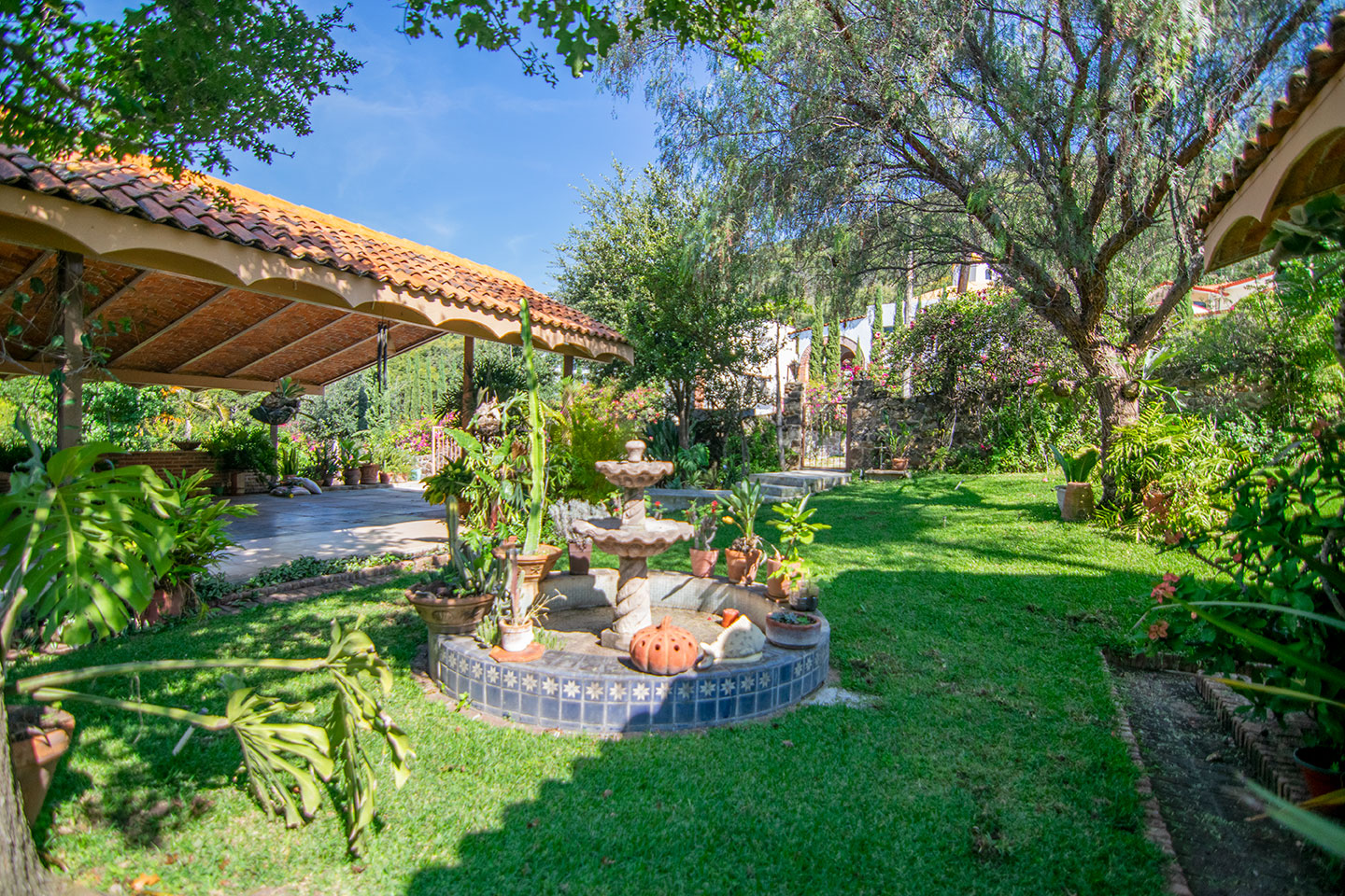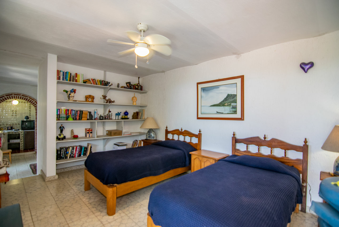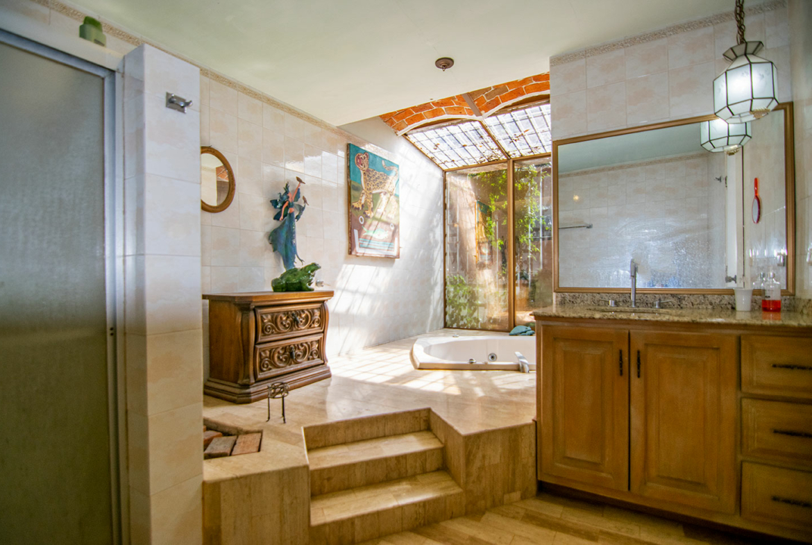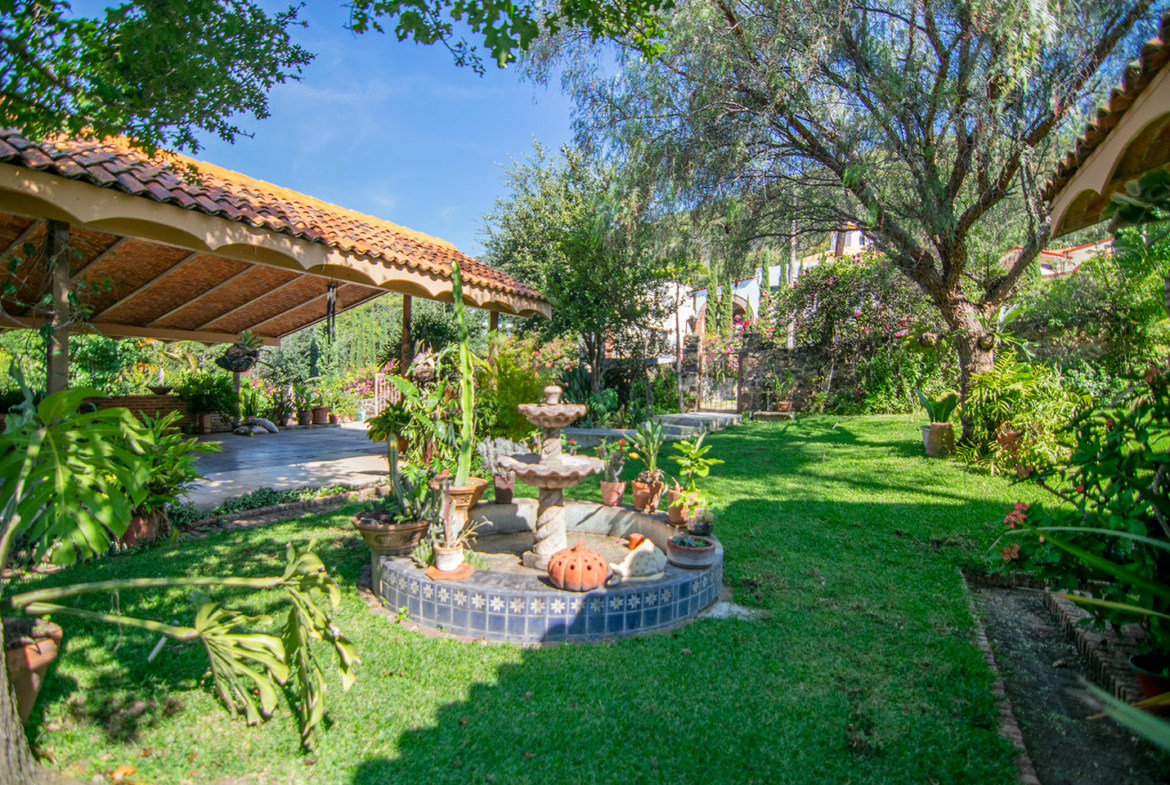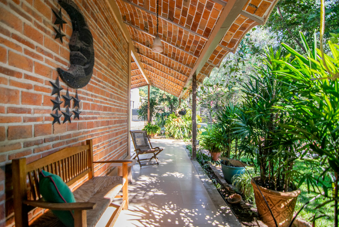 The main terrace is the heart of the home — the perfect spot to take in spectacular lake views and sunsets. From here, a staircase leads down to the lower level, where you’ll find a refreshing swimming pool surrounded by gardens and a separate guest casita. This versatile space can serve as guest accommodation or a rental unit with its own private entrance.