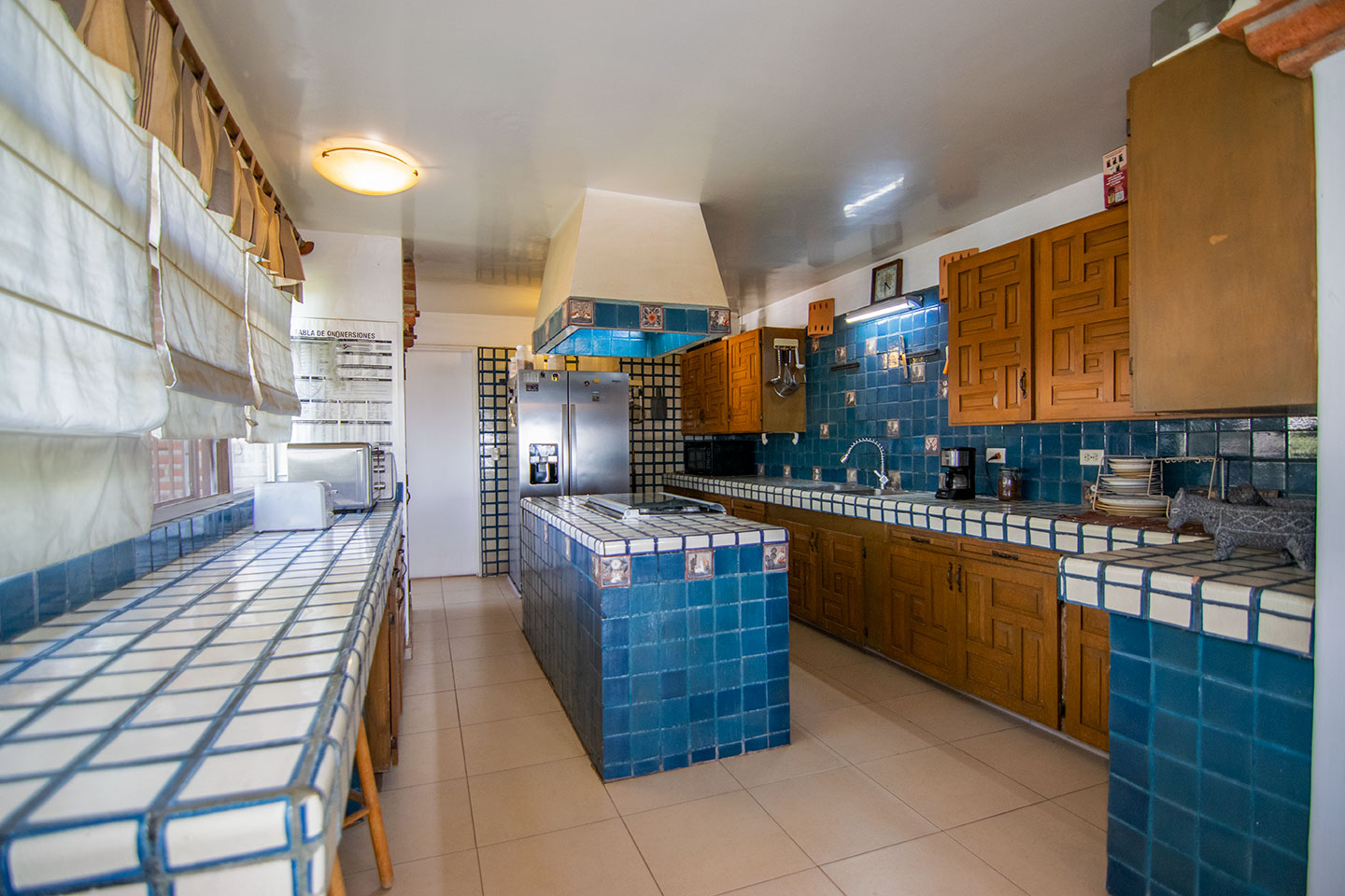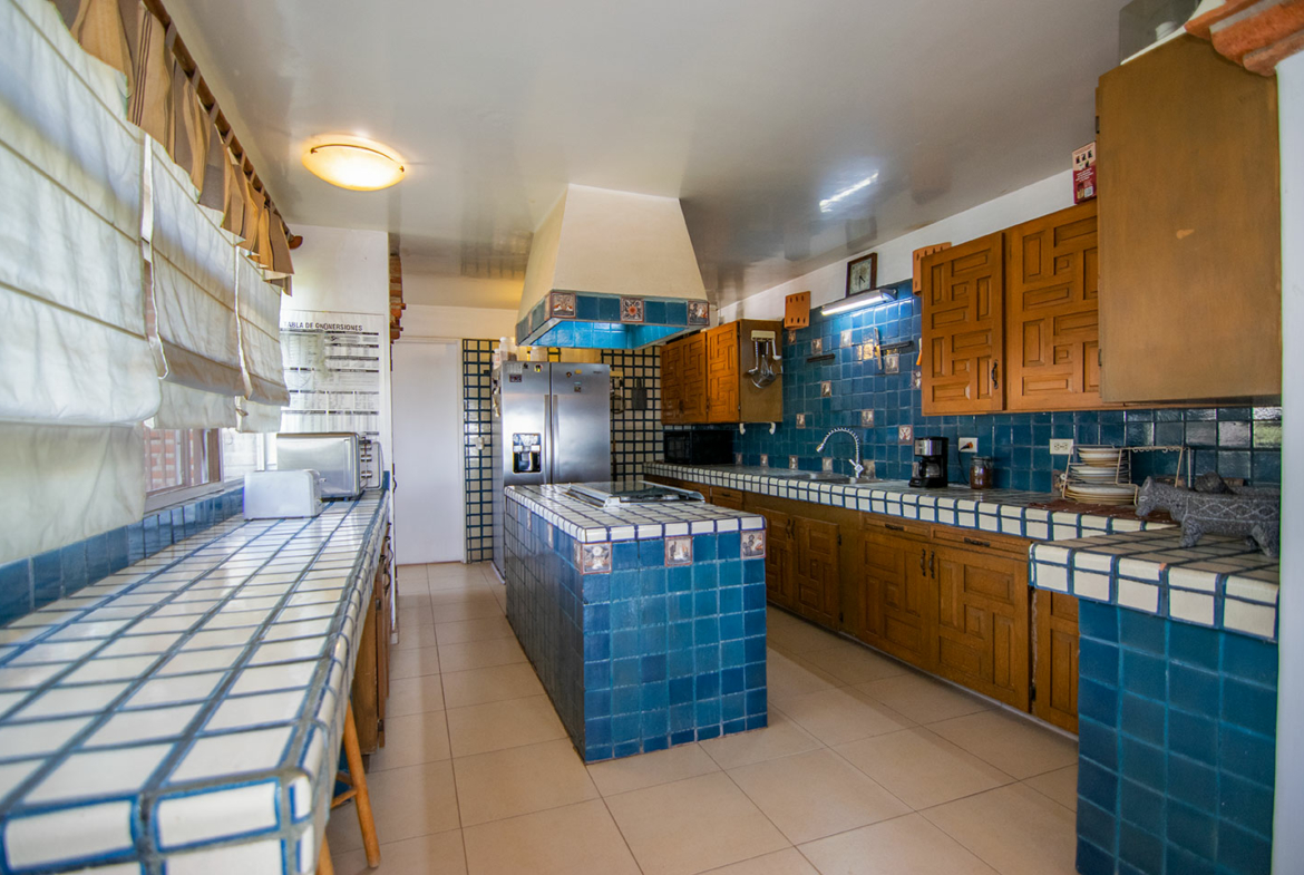 La cocina, con una gran despensa, lavandería y patio de servicio con acceso directo a la cochera, ofrece vistas espectaculares a las montañas y un contacto constante con la naturaleza.