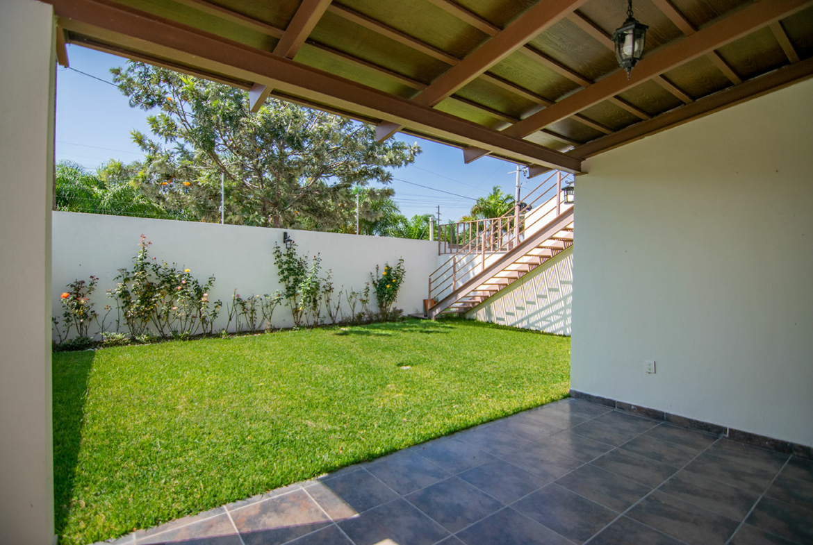 Cuenta con área de lavandería, cochera cubierta para dos autos, y dos terrazas: una en planta baja junto al jardín privado, y otra en planta alta con bellas vistas al lago.